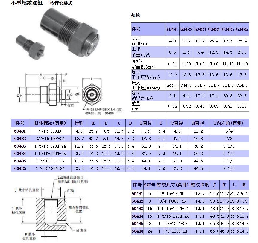 小型螺紋油缸 - 歧管安裝式