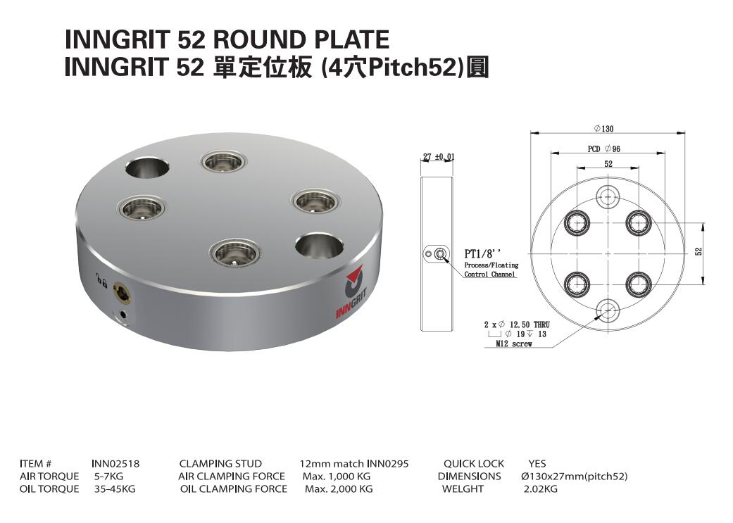 INN02518 單定位板 (4穴Pitch52)圓
