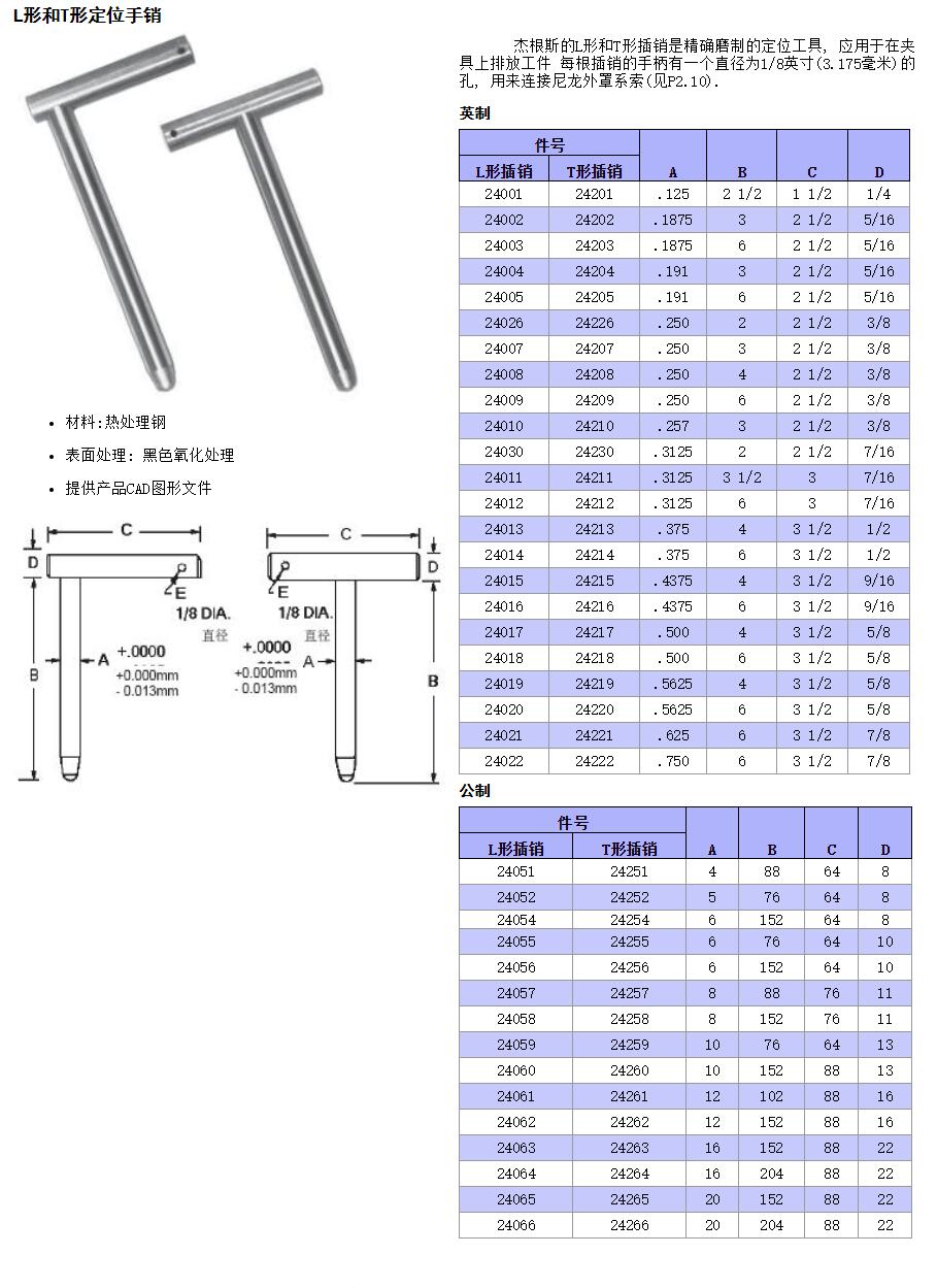 L形和T形定位手銷